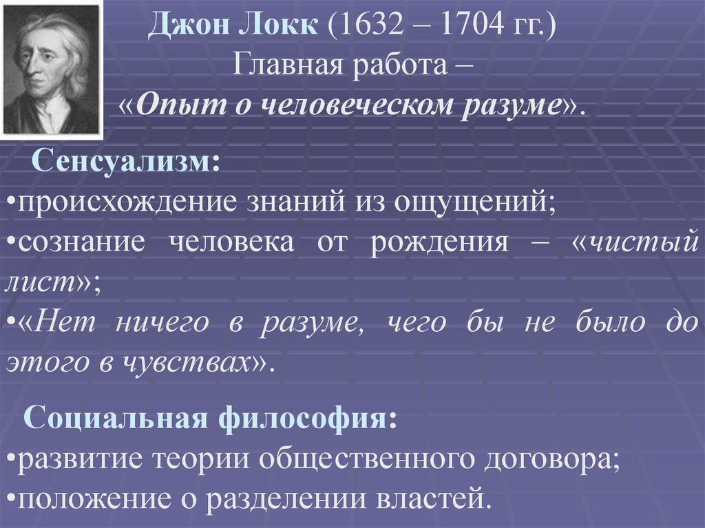 Джон Локк (1632 – 1704 гг.)Главная работа –