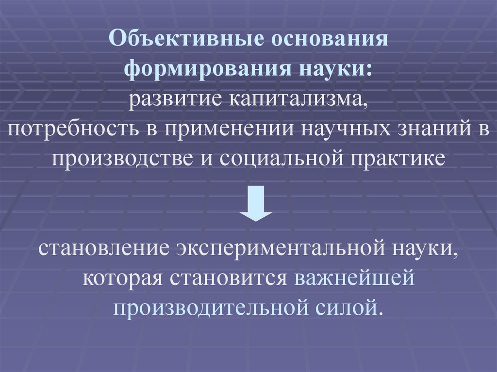 Объективные основанияформирования науки: