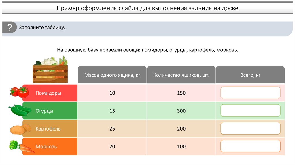 Пример оформления слайда для работы на доскеВыполните задание.