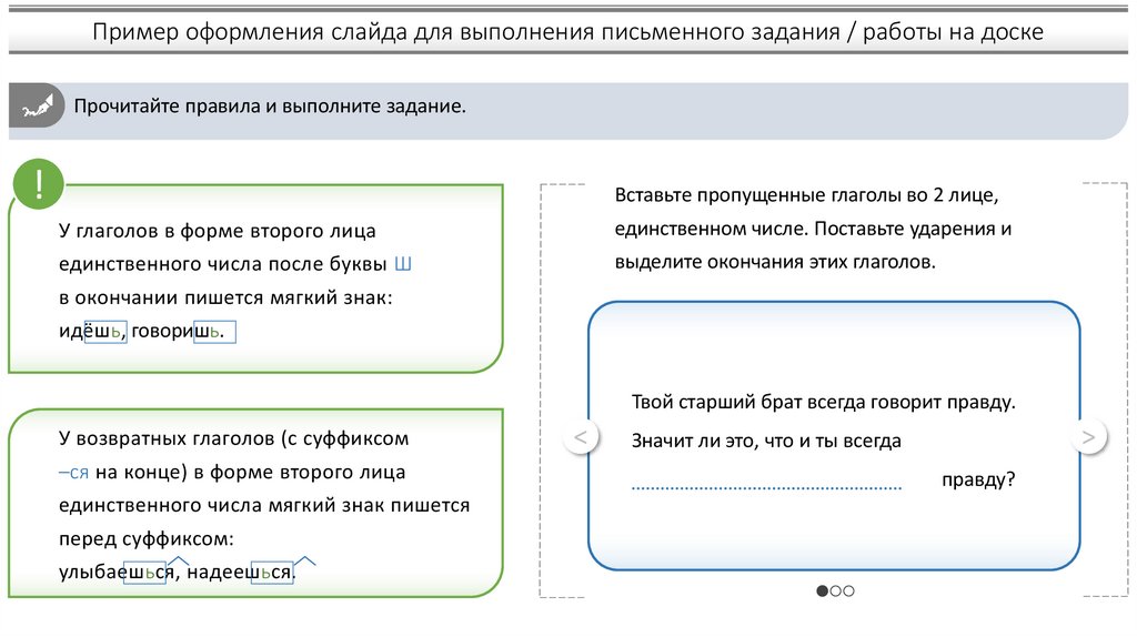 Пример оформления слайда для выполнения письменного задания / работы на доскеПрочитайте правила и выполните задание.