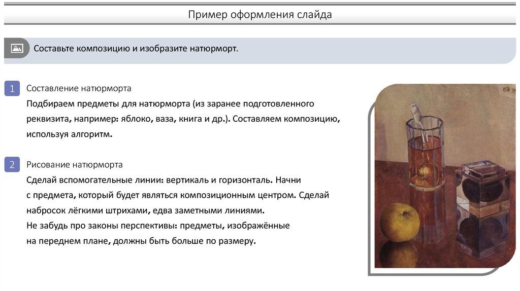 Пример оформления слайдаСоставьте композицию и изобразите натюрморт.