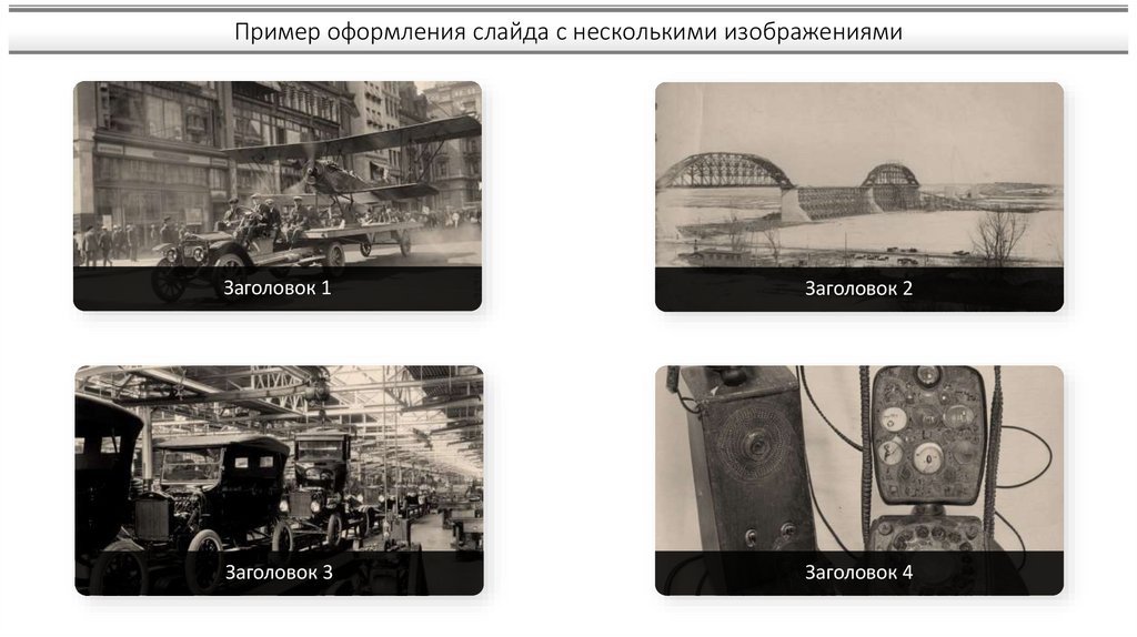 Пример оформления слайда с несколькими изображениямиЗаголовок 1
