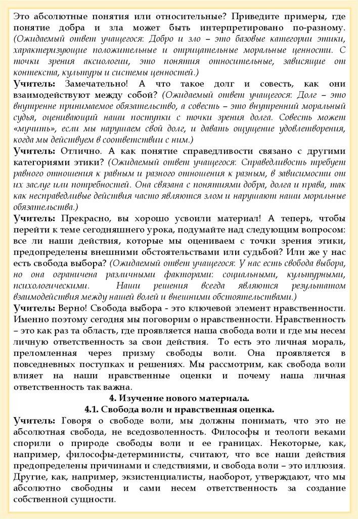 Учитель: Верно! Свобода выбора - это ключевой элемент нравственности.