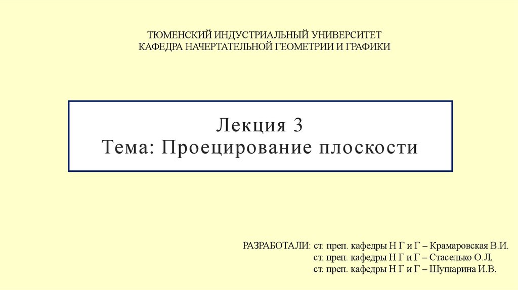 ТЮМЕНСКИЙ ИНДУСТРИАЛЬНЫЙ УНИВЕРСИТЕТКАФЕДРА НАЧЕРТАТЕЛЬНОЙ ГЕОМЕТРИИ И ГРАФИКИ