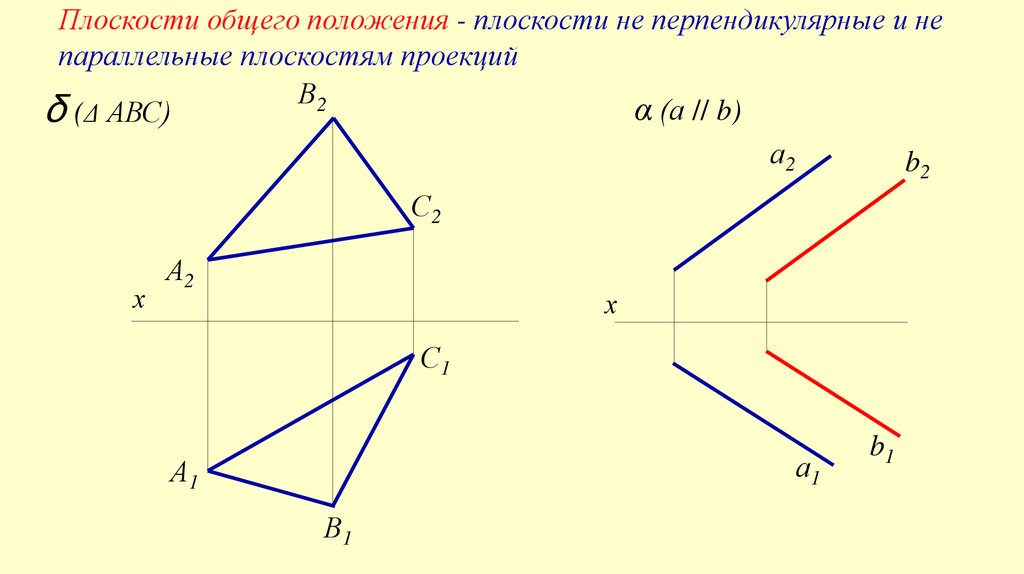 Плоскость (отсек плоскости) может быть задана :1. Параллельными прямыми 2. Пересекающимися прямыми 3. Тремя точками, не