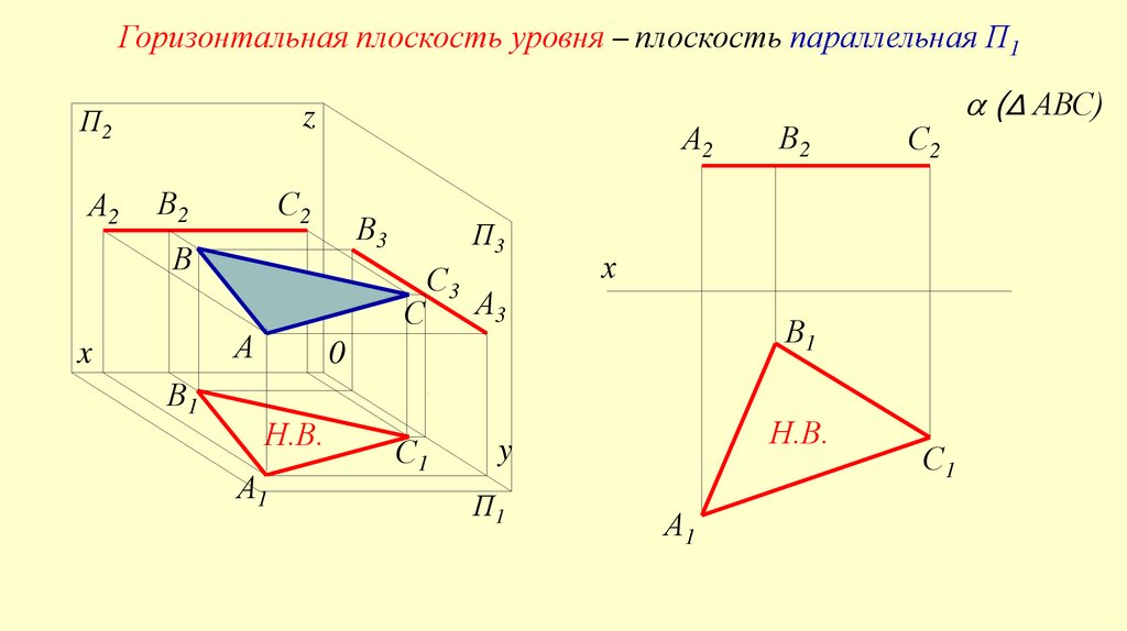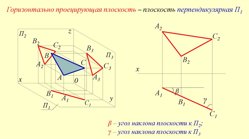 β (Δ DEF) ┴ П1(горизонтальнопроецирующая плоскость)