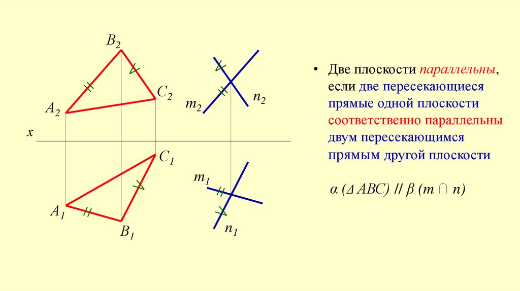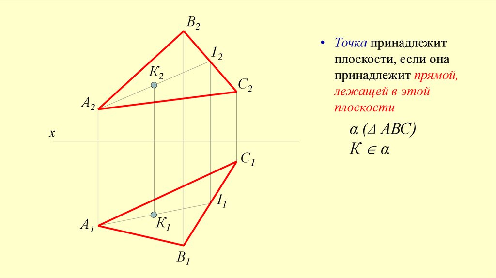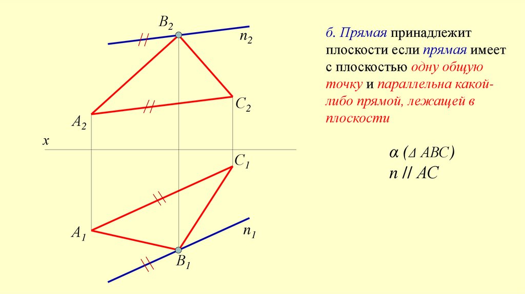 а. Прямая принадлежит плоскости, если две её точки принадлежат этой плоскостиВ2