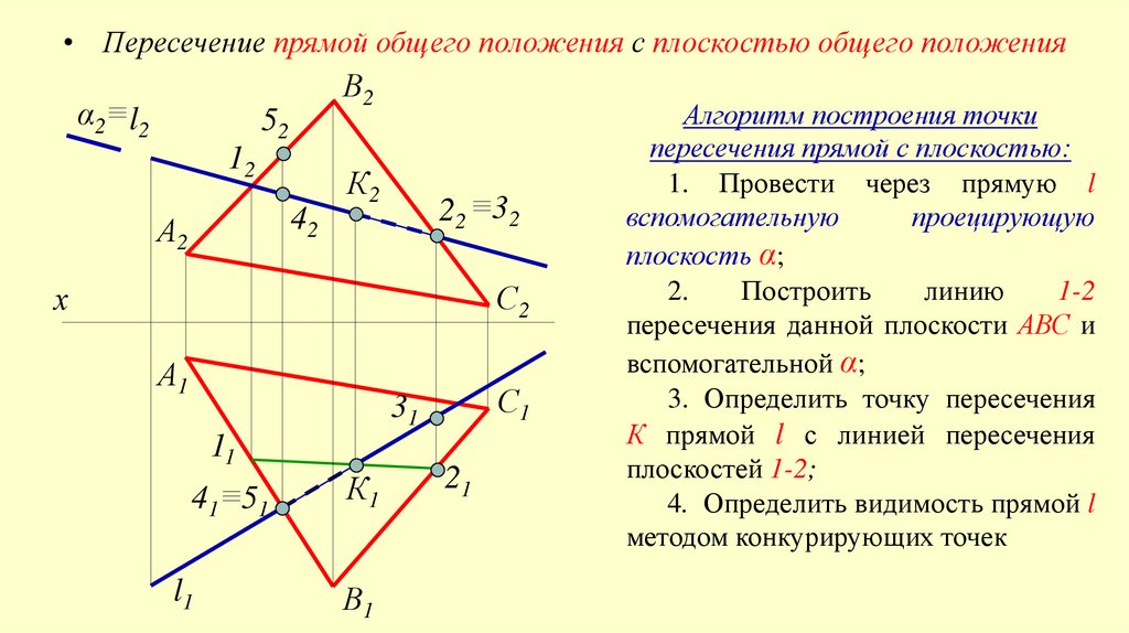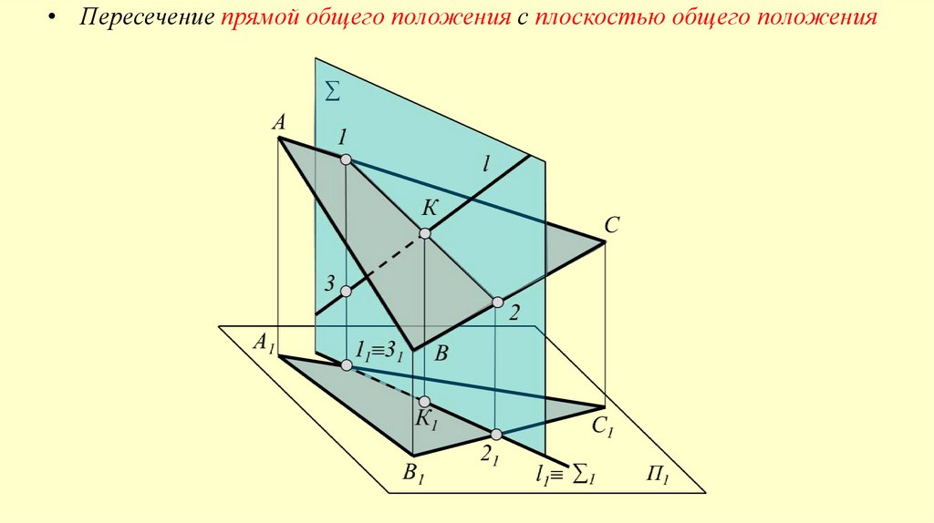 • Пересечение прямой общего положения с плоскостью общего положения30.