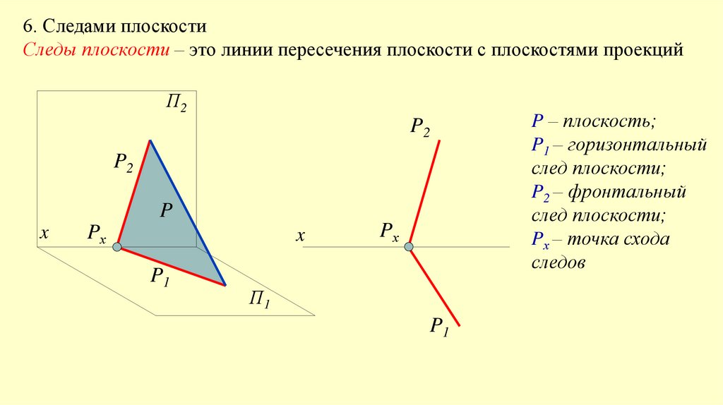 6. Следами плоскостиСледы плоскости – это линии пересечения плоскости с плоскостями проекций