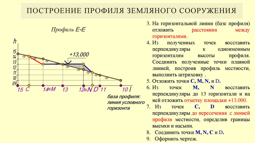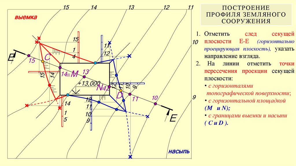 Задача: М 1:200Задана топографическая поверхность и земляное сооружение (строительная