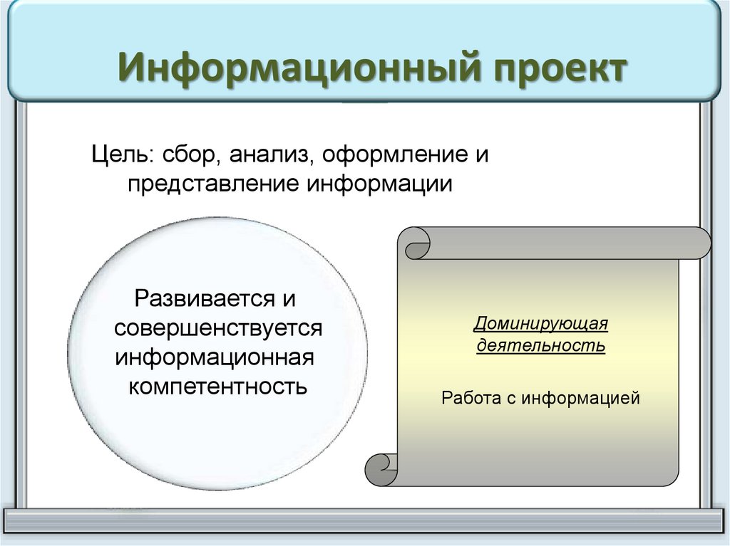 Информационный проектЦель: сбор, анализ, оформление и