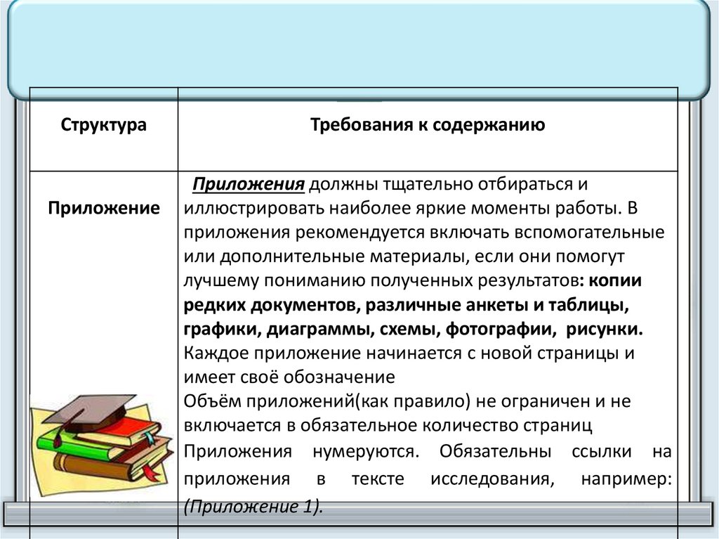 приложения в тексте исследования, например: