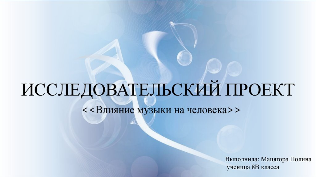 ИССЛЕДОВАТЕЛЬСКИЙ ПРОЕКТ<<Влияние музыки на человека>>