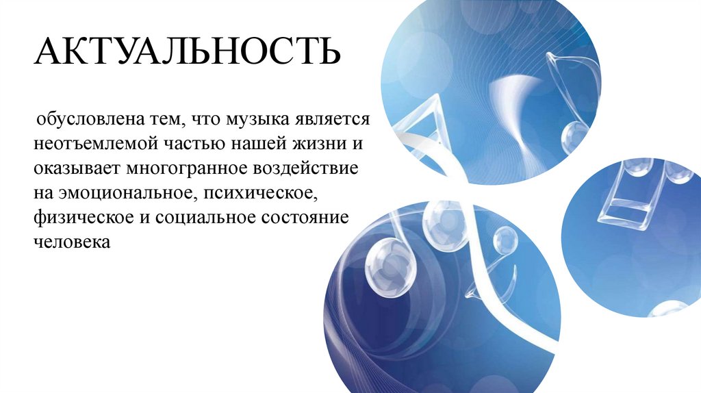 АКТУАЛЬНОСТЬобусловлена тем, что музыка является
