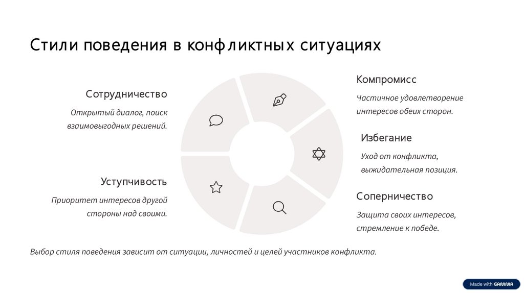 Выбор стиля поведения зависит от ситуации, личностей и целей участников конфликта.