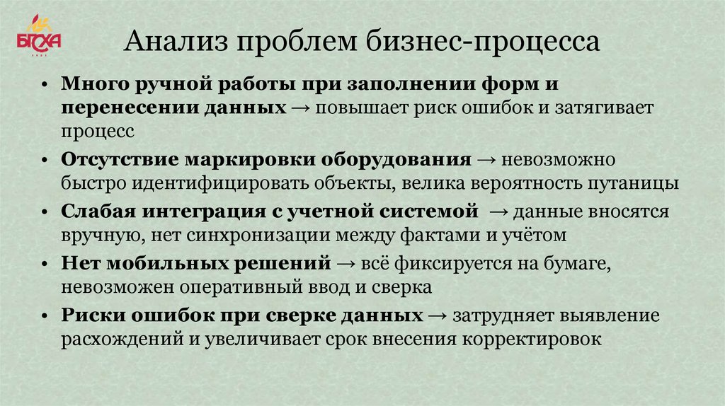 Анализ проблем бизнес-процесса• Много ручной работы при заполнении форм и
