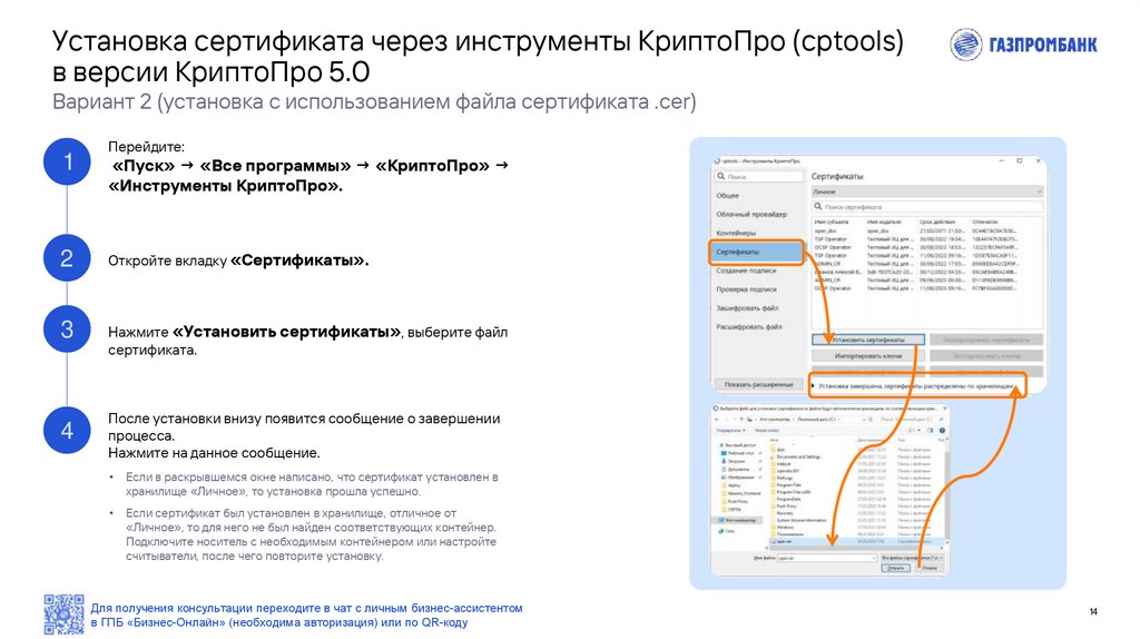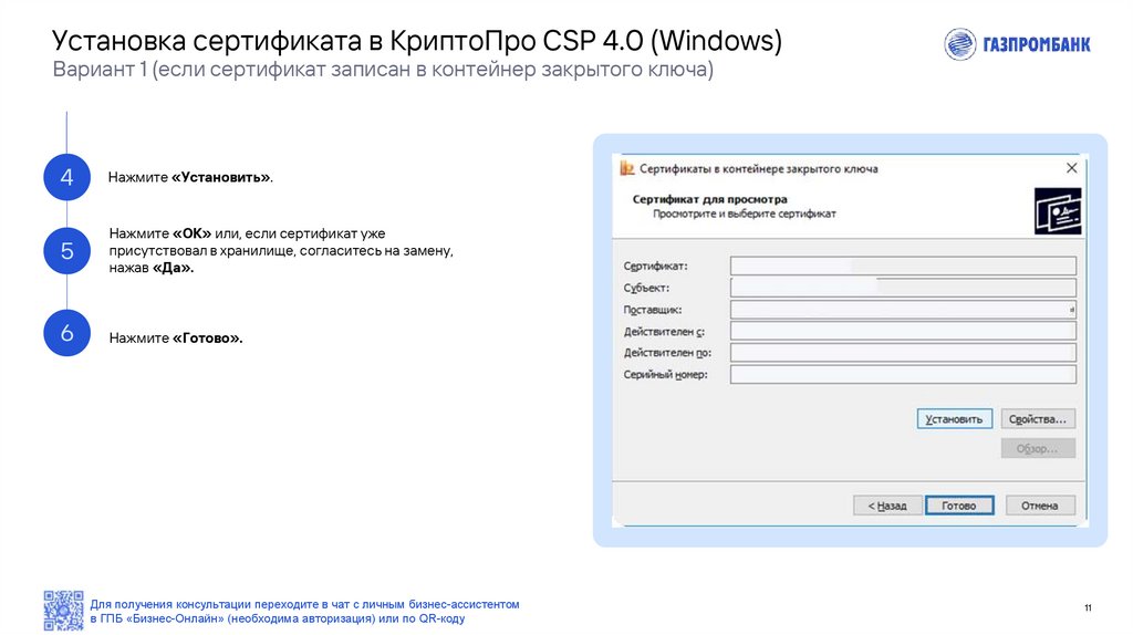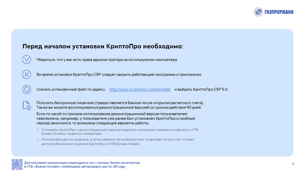в ГПБ «Бизнес-Онлайн» (необходима авторизация) или по QR-коду
