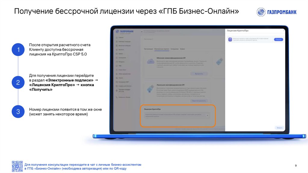 Получение бессрочной лицензии в «ГПБ Бизнес – Онлайн»