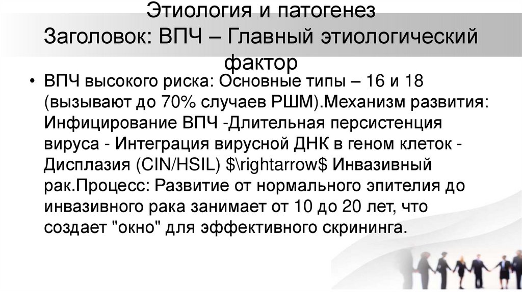 Этиология и патогенезЗаголовок: ВПЧ – Главный этиологический