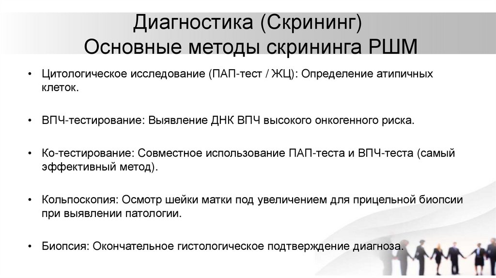 Диагностика (Скрининг)Основные методы скрининга РШМ