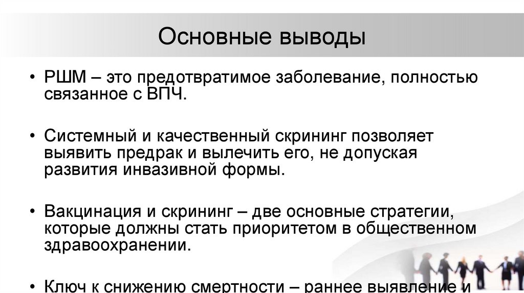 Основные выводы• РШМ – это предотвратимое заболевание, полностью