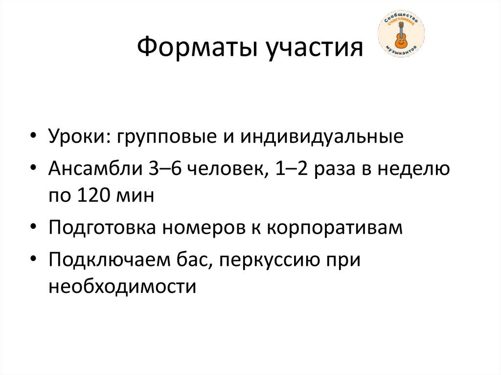 • Ансамбли 3–6 человек, 1–2 раза в неделю