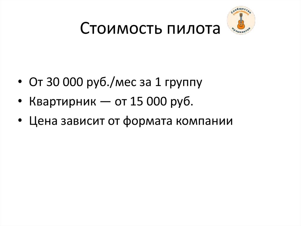 Стоимость пилота• От 30 000 руб./мес за 1 группу