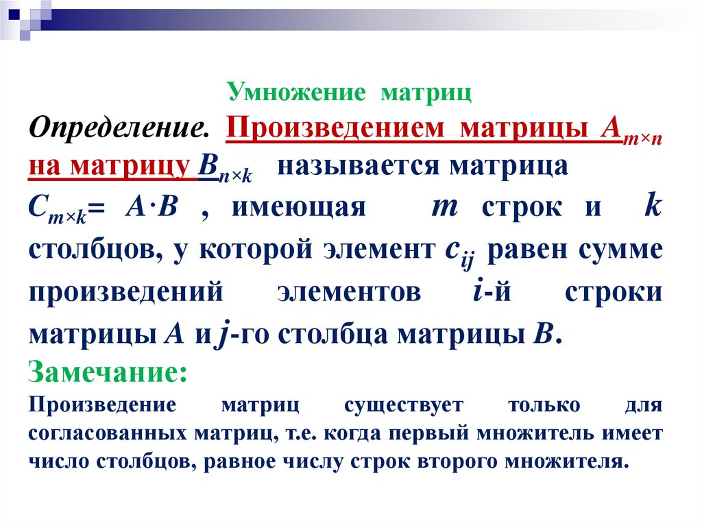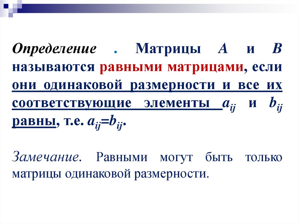 Определение . Матрицы A и Bназываются равными матрицами, если
