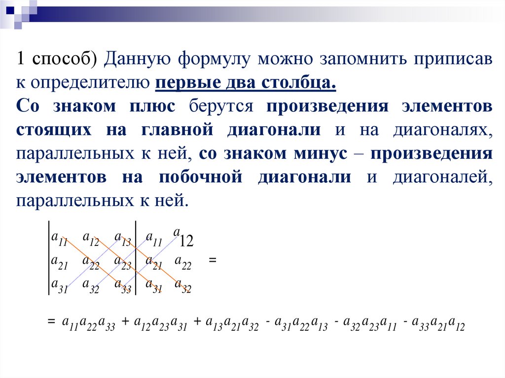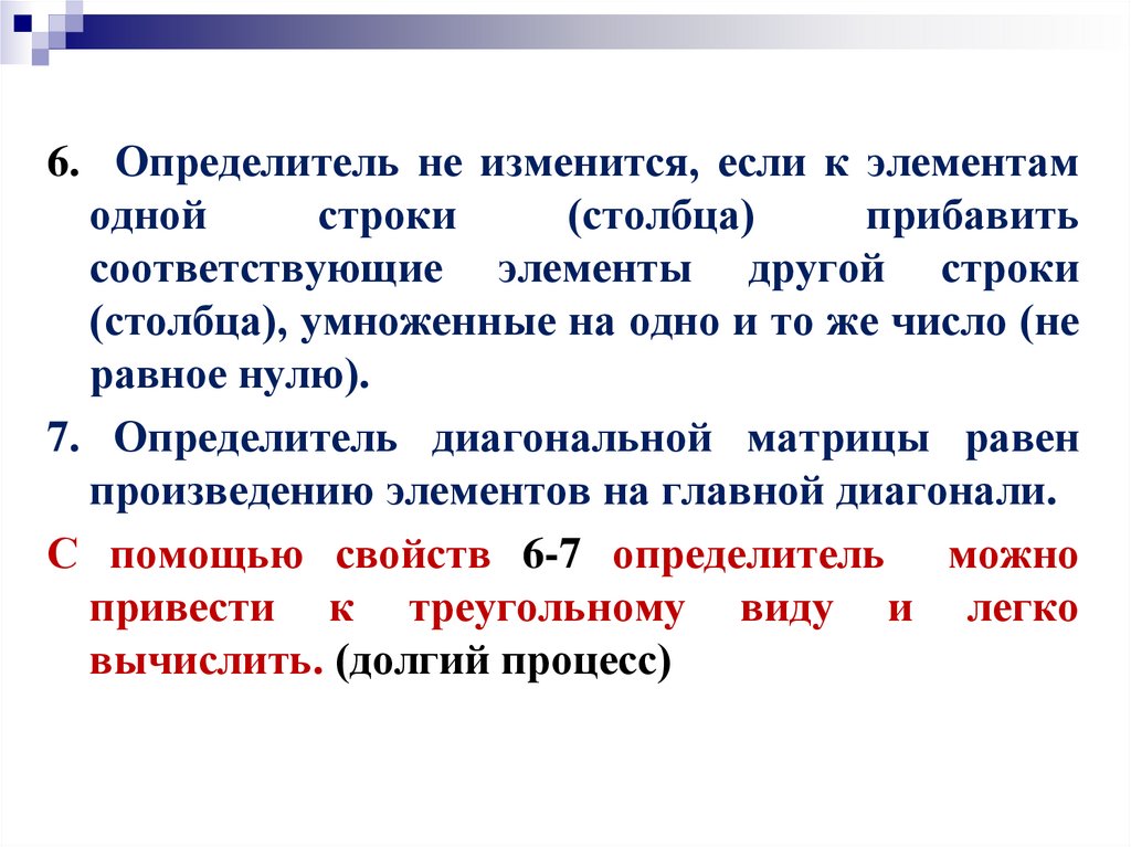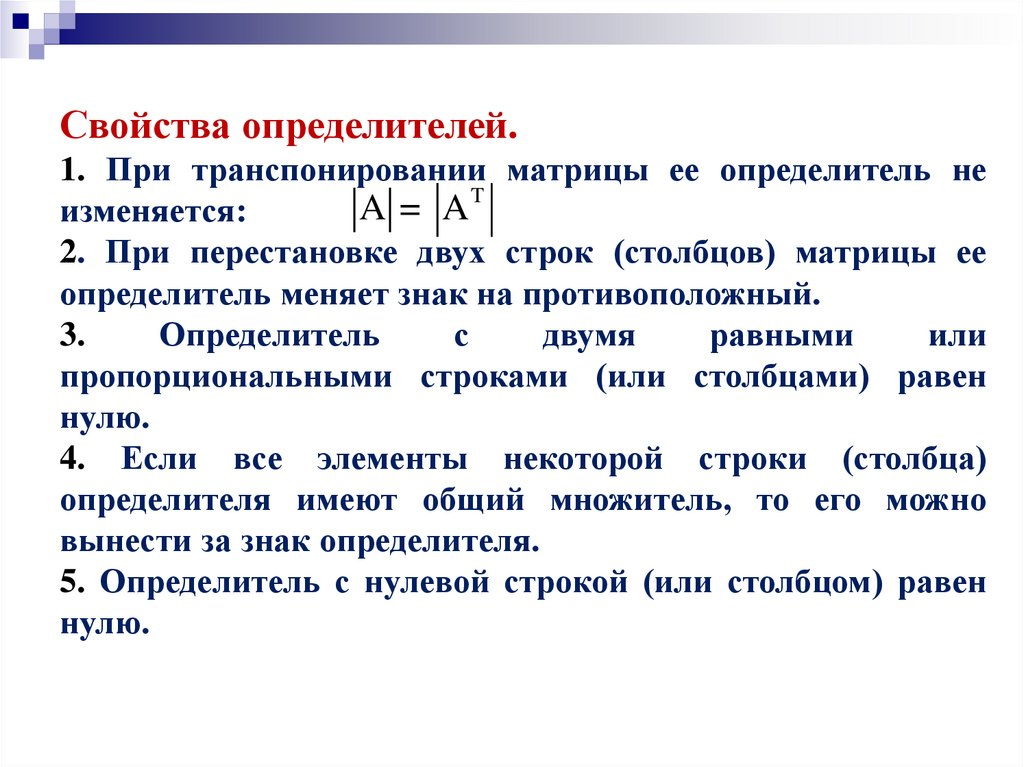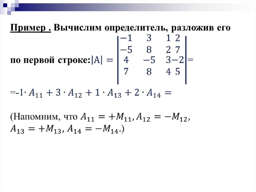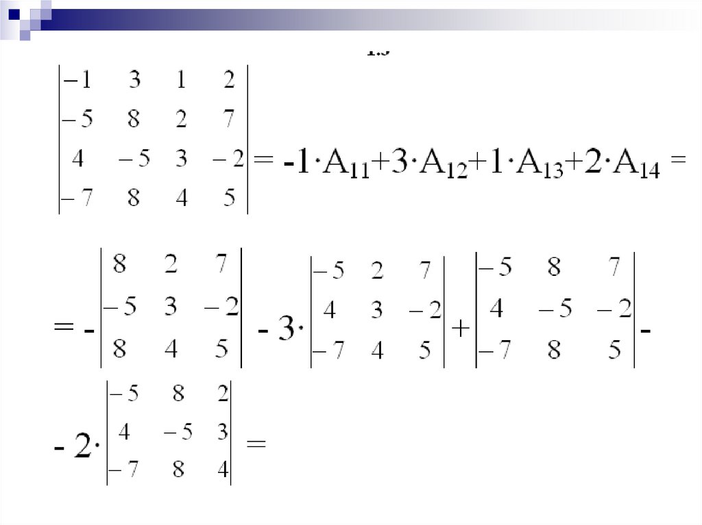 1) Выбрать «ряд» определителя (строку илистолбец), содержащий нуль ( используя
