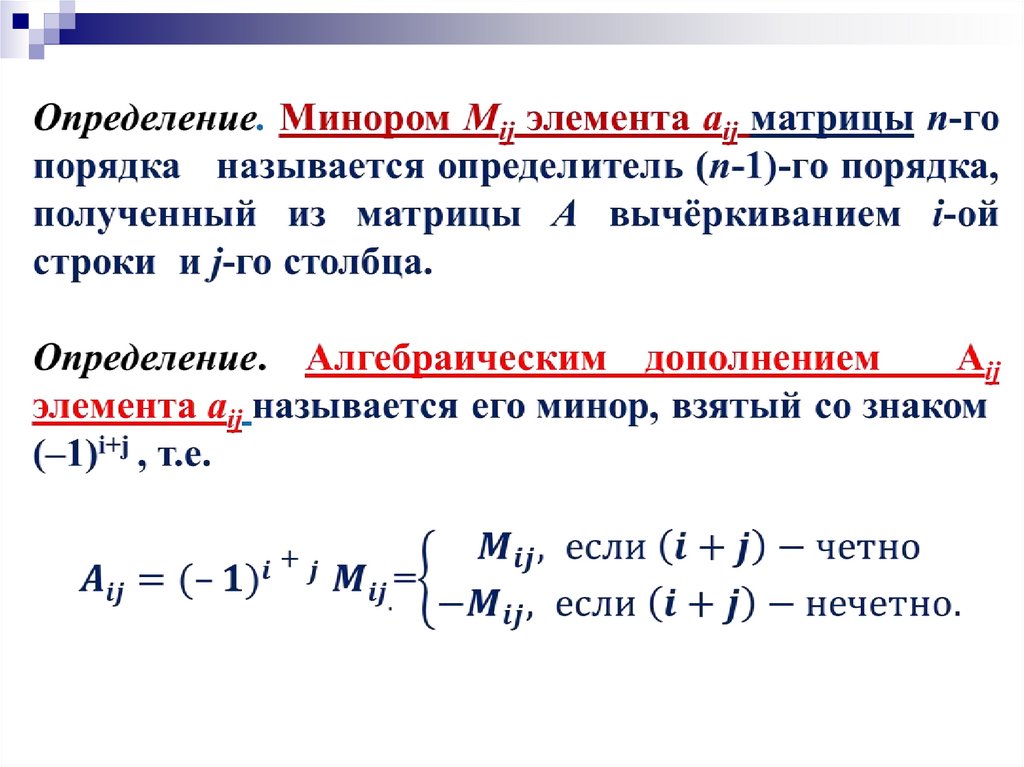 27. Разложение определителя по элементам строки или столбца матрицы (теорема Лапласа).