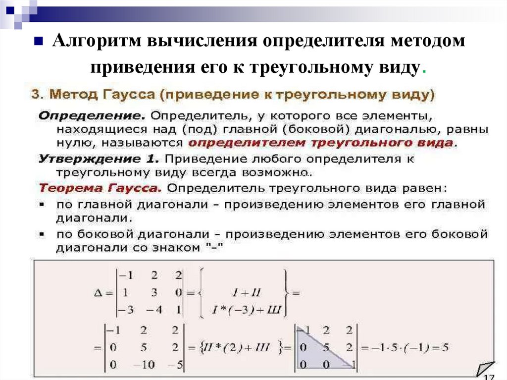 Алгоритм вычисления определителя методомприведения его к треугольному виду.