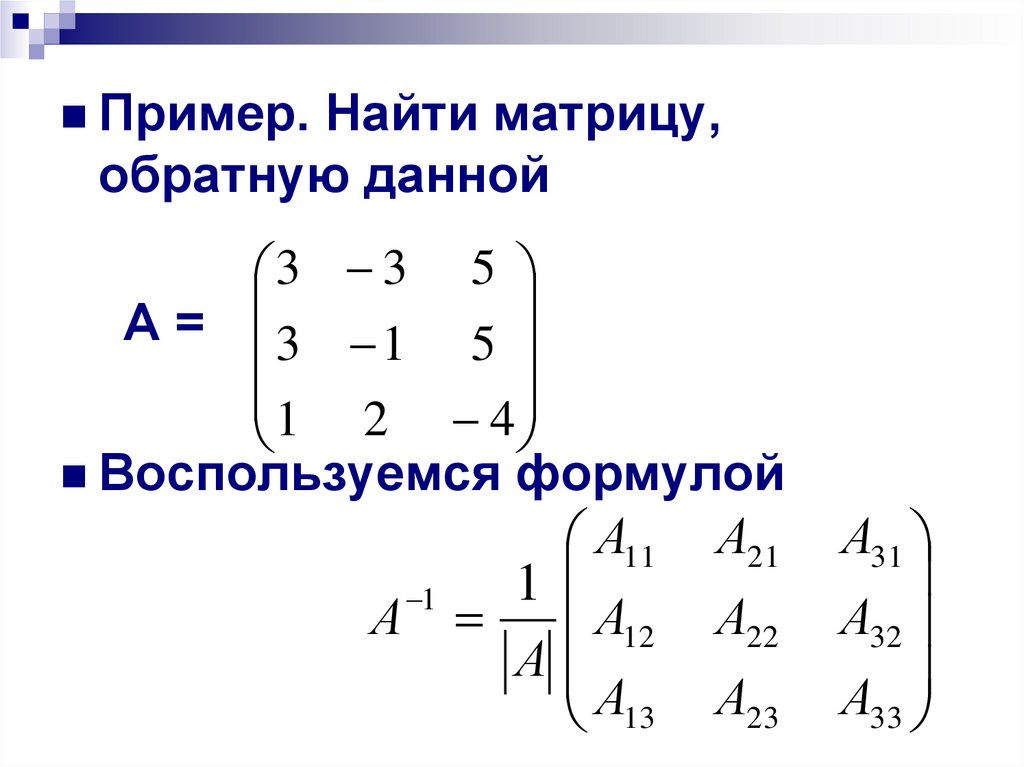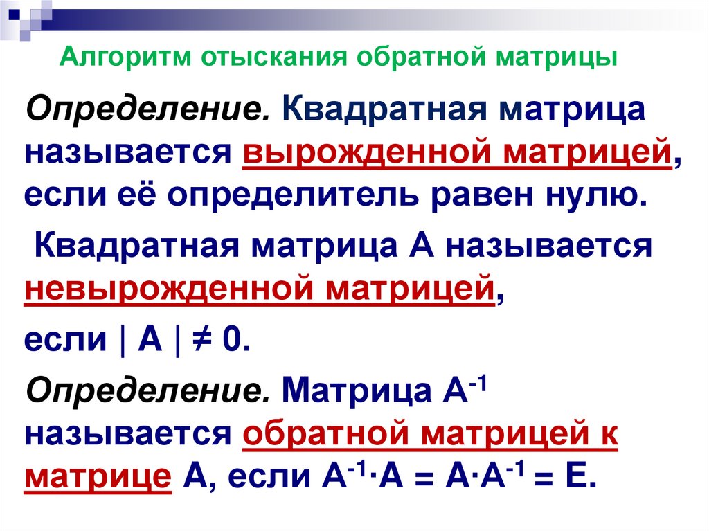 Алгоритм отыскания обратной матрицыОпределение. Квадратная матрица