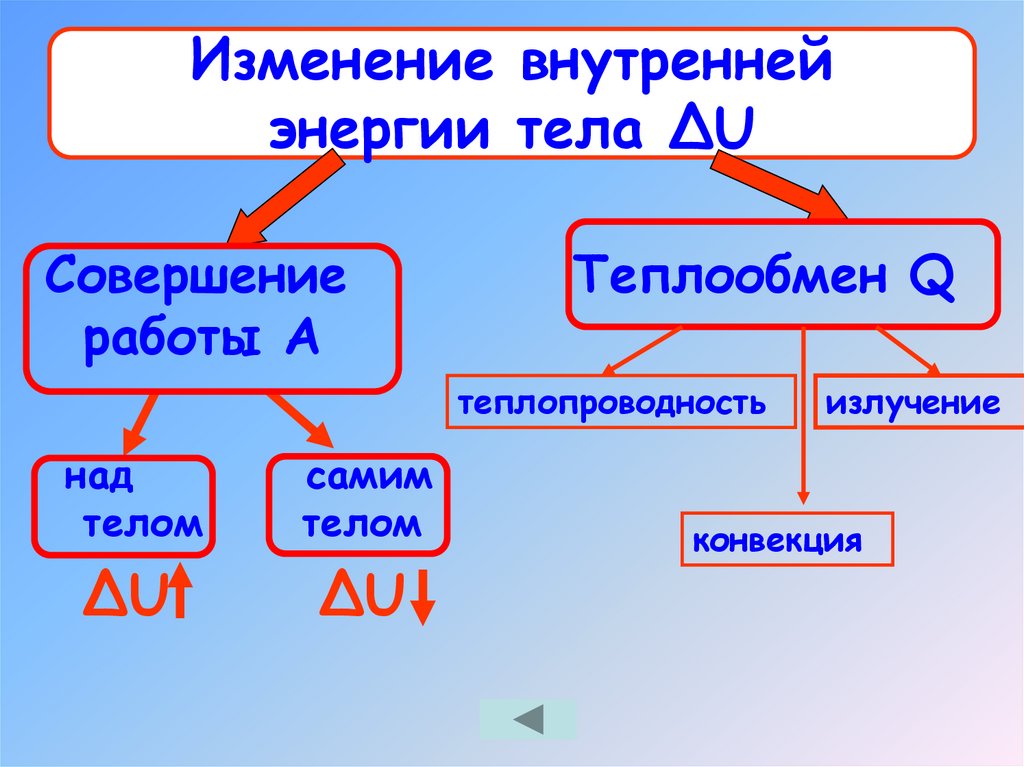 При теплопередаче количества теплоты Q внутренняя энергия тела 2
