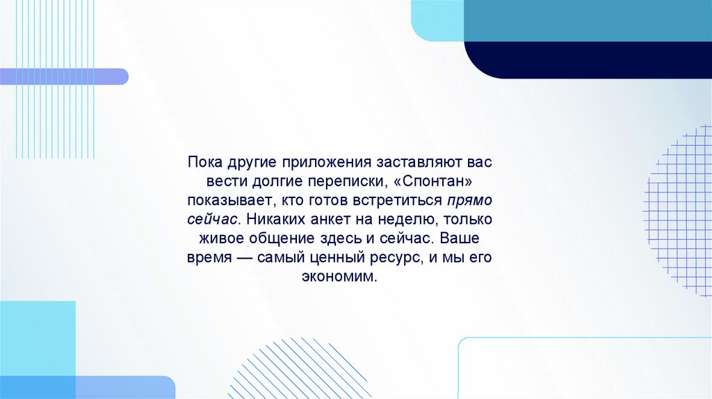 Пока другие приложения заставляют васвести долгие переписки, «Спонтан»