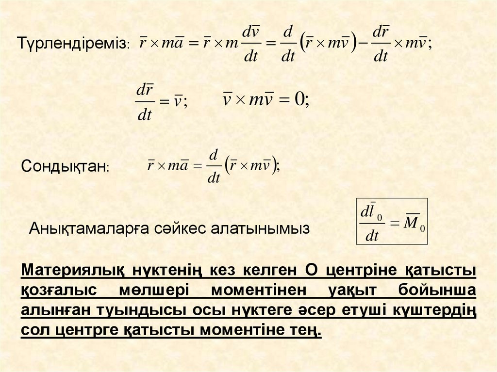9. Материялық нүктенің қозғалыс мөлшері моментінің (кинетикалық моментінің)өзгеруі туралы теорема