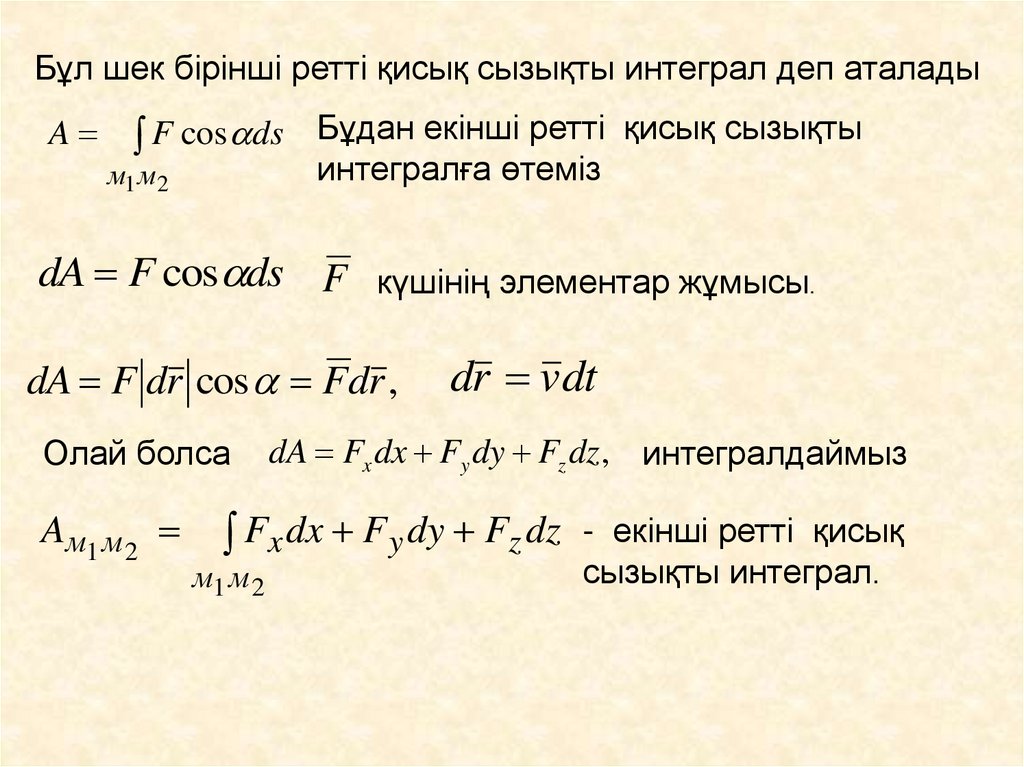 dA Fx dx Fy dy Fz dz, интегралдаймыз