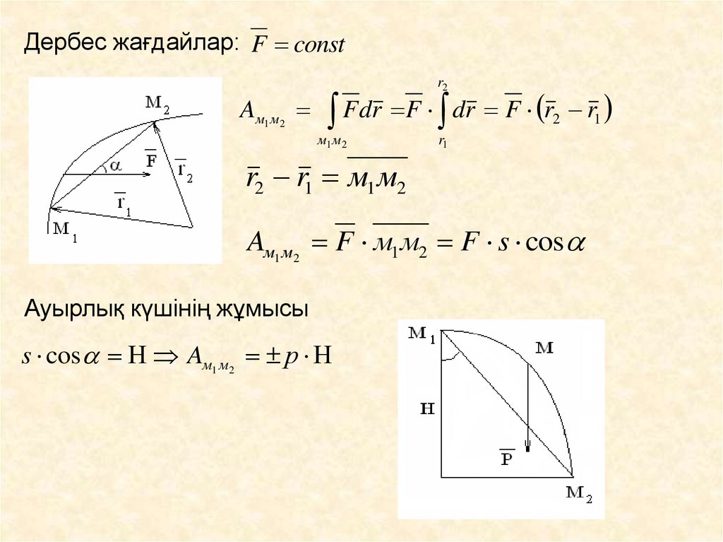 16. Жалпы жағдайда күштің бағыты мен шамасы өзгереді және күштің әсер ету нүктесі М қисықсызықты қозғалыста болады.