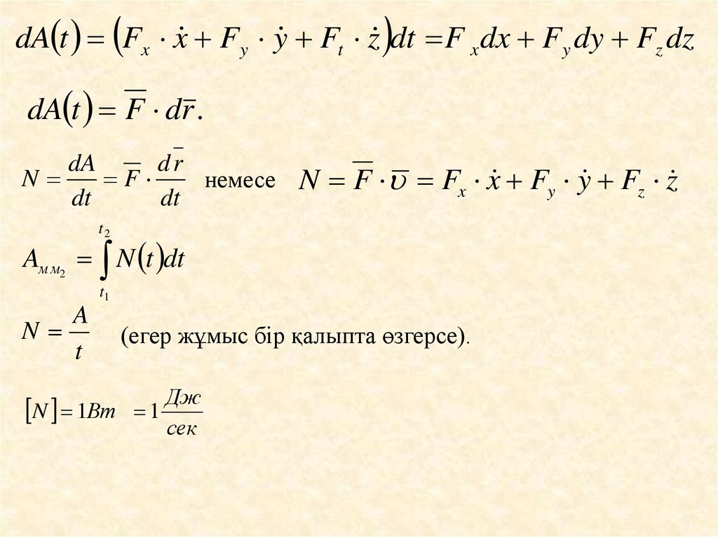 F күшінің N қуаты деп жұмыстың өзгеру жылдамдығын
