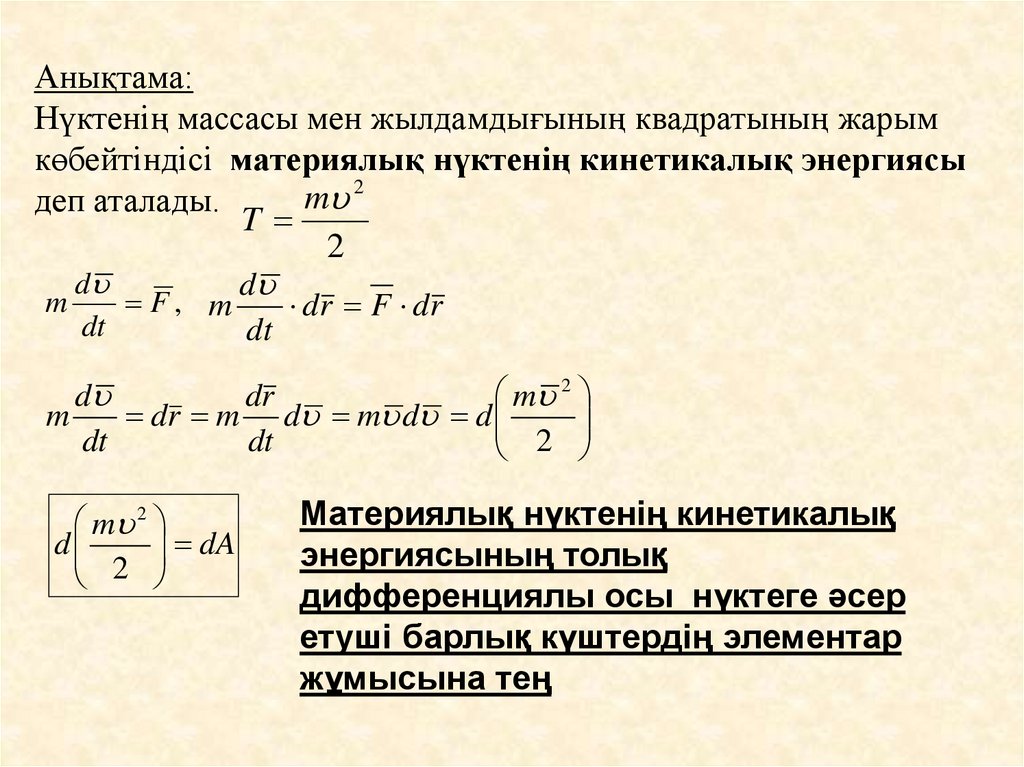 Анықтама:Нүктенің массасы мен жылдамдығының квадратының жарым