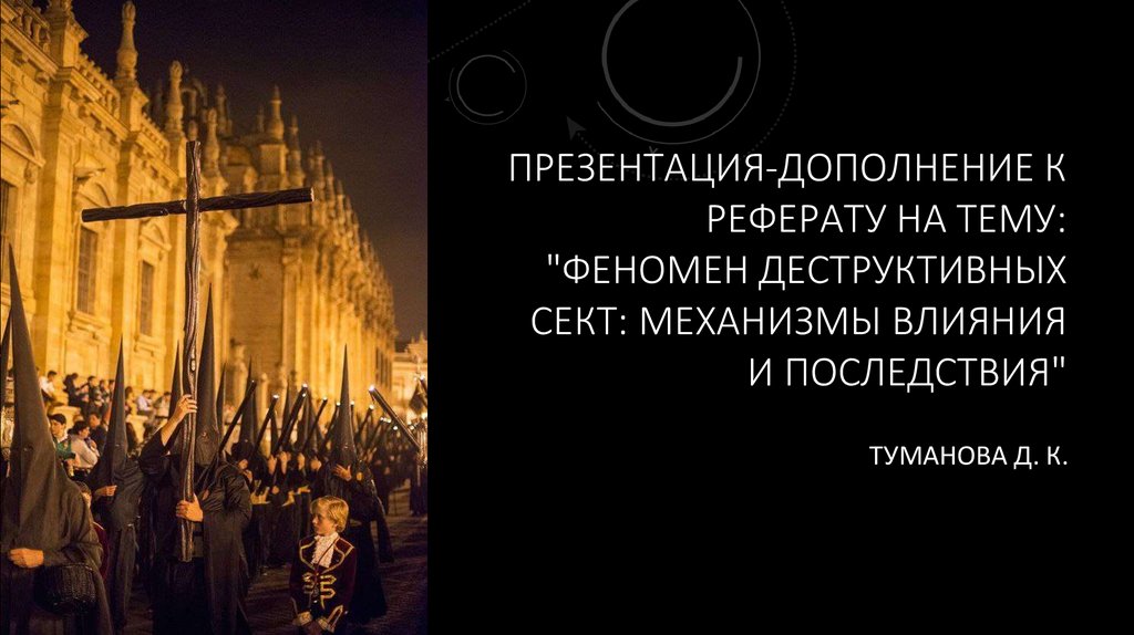 1. Презентация-дополнение к реферату на тему: "Феномен деструктивных сект: механизмы влияния и последствия"