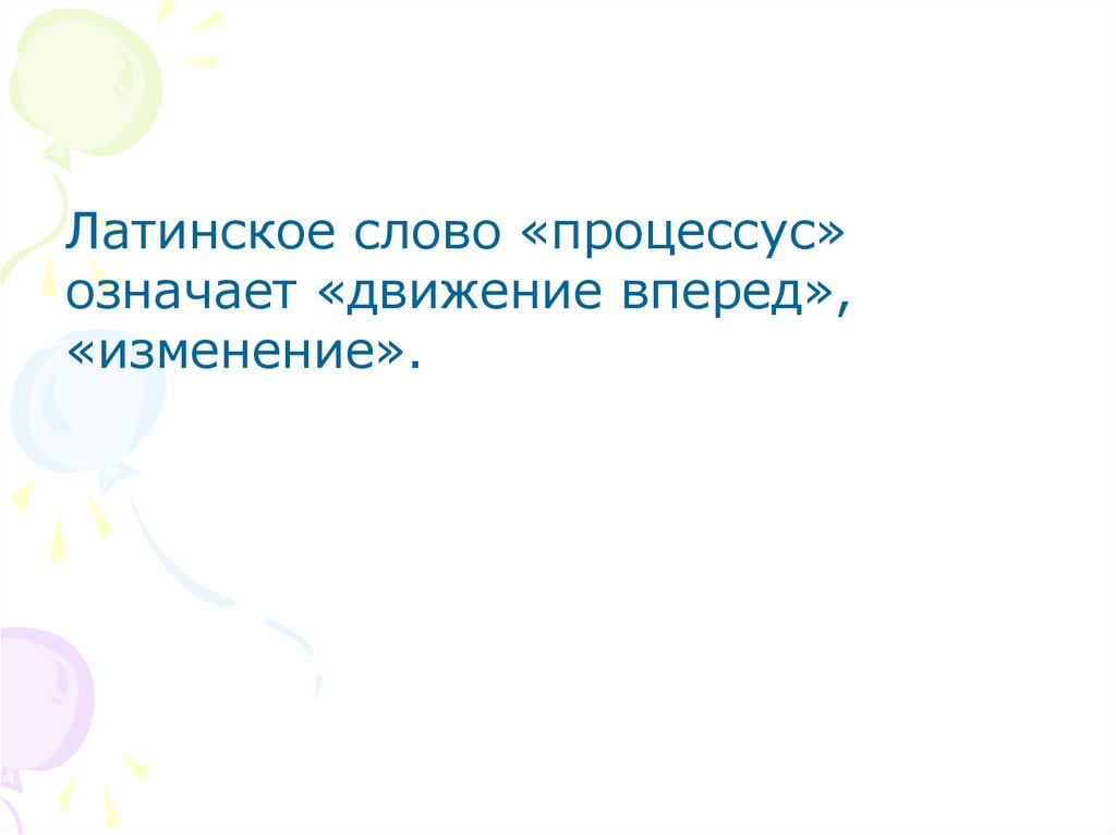 Латинское слово «процессус»означает «движение вперед»,