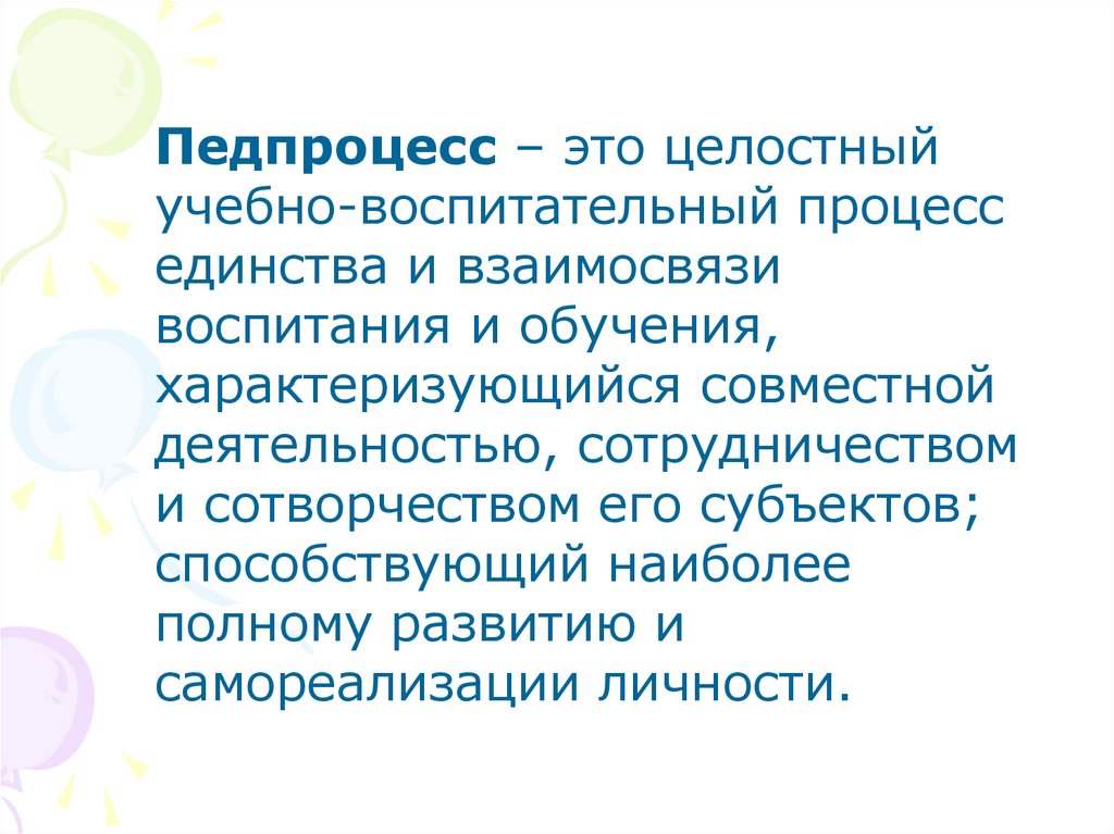 Педпроцесс – это целостныйучебно-воспитательный процесс