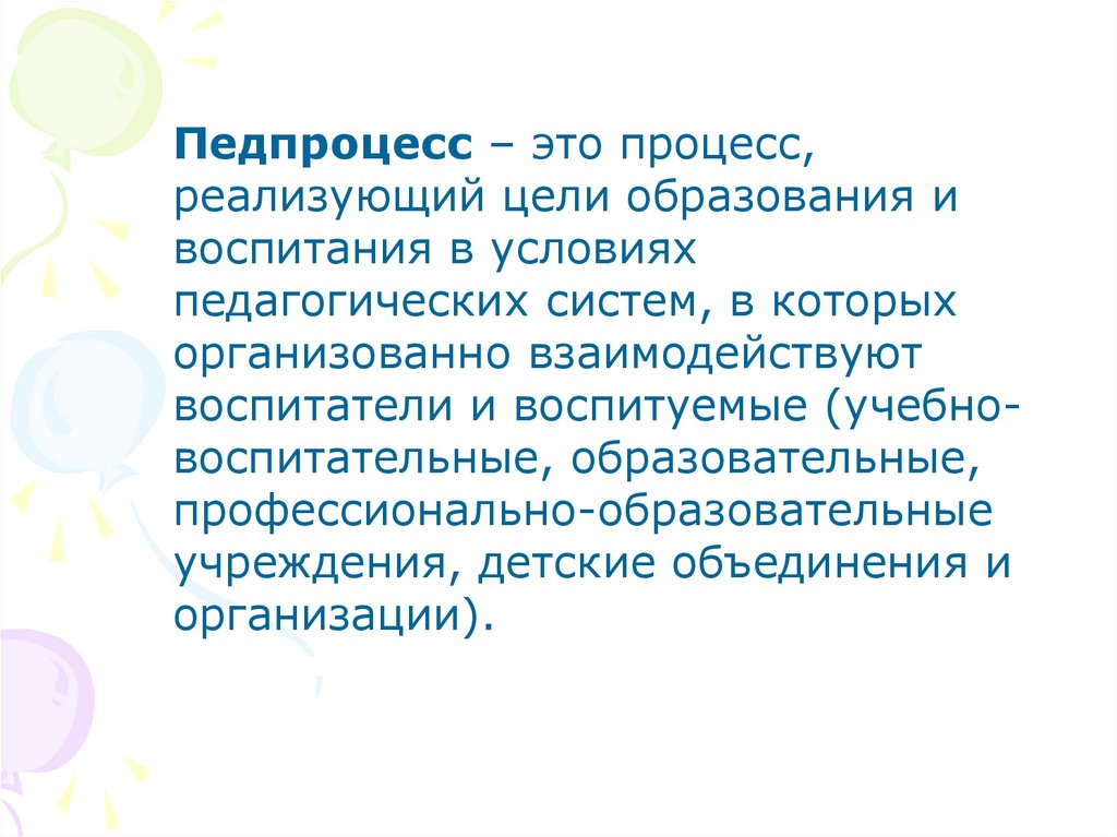 Педпроцесс – это процесс,реализующий цели образования и
