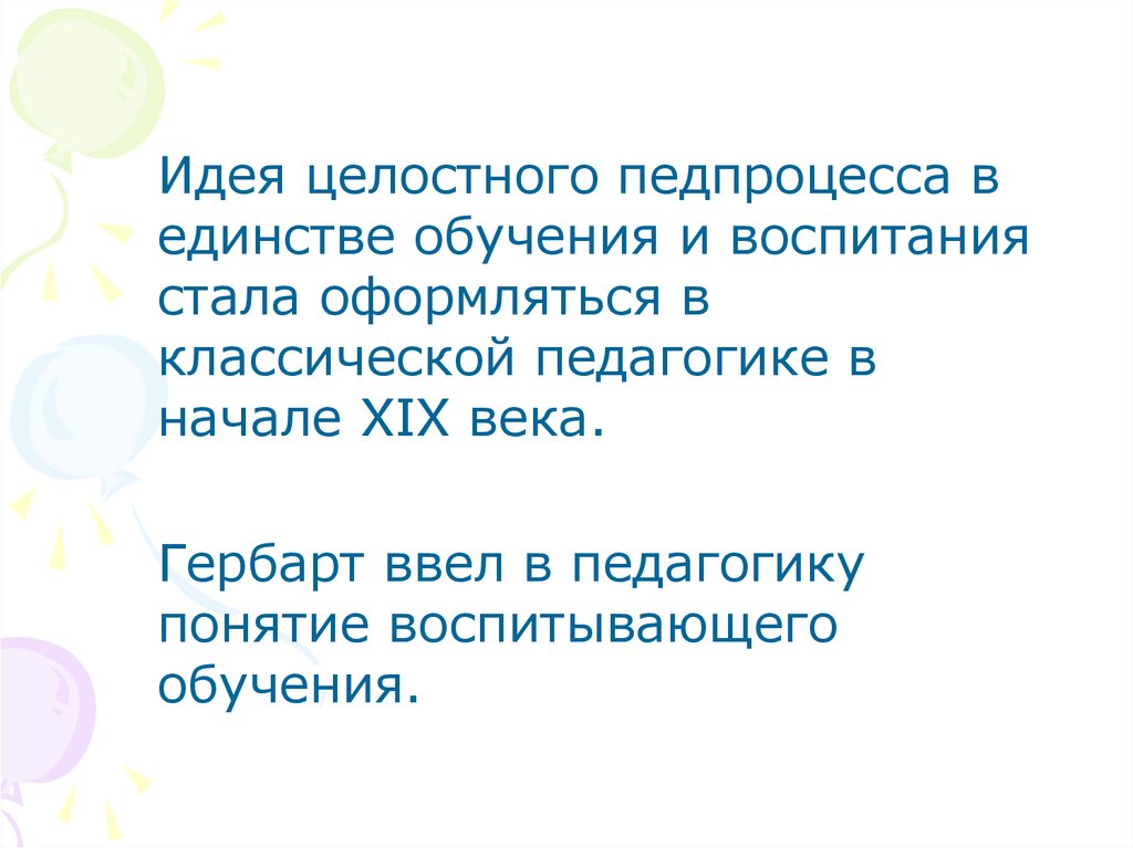 Идея целостного педпроцесса вединстве обучения и воспитания