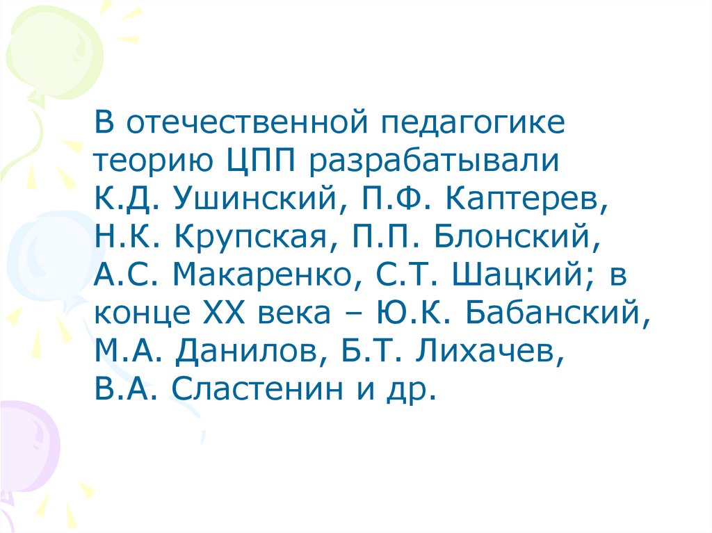 В отечественной педагогикетеорию ЦПП разрабатывали