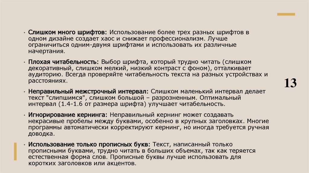 • Игнорирование кернинга: Неправильный кернинг может создавать