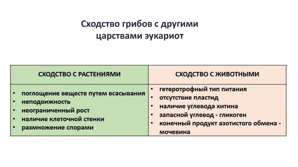 Сходство грибов с другимицарствами эукариот