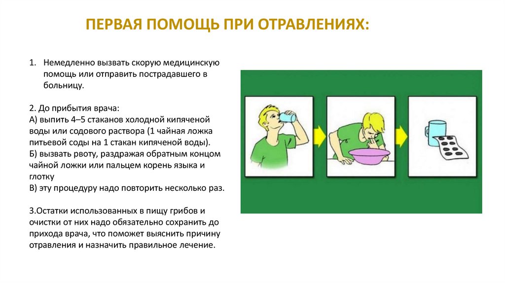 ПЕРВАЯ ПОМОЩЬ ПРИ ОТРАВЛЕНИЯХ:1. Немедленно вызвать скорую медицинскую