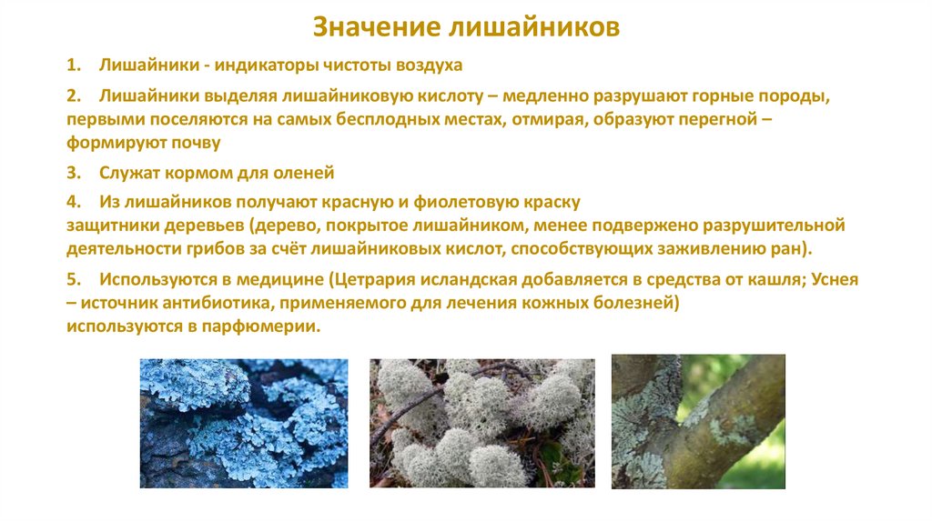 5. Используются в медицине (Цетрария исландская добавляется в средства от кашля; Уснея