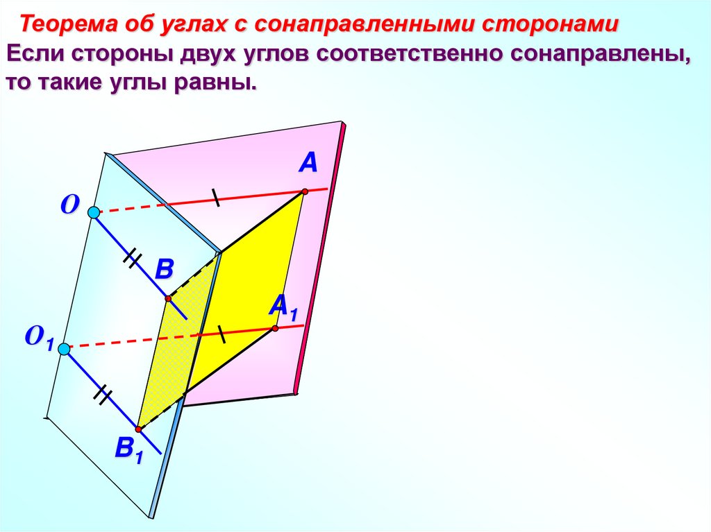 Теорема об углах с сонаправленными сторонамиЕсли стороны двух углов соответственно сонаправлены,